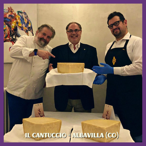 IL CANTUCCIO - Albavilla (CO) Lo Chef Mauro Elli ha le idee ben chiare: per fare alta cucina non basta la cura e l’attenzione verso il territorio e i suoi prodotti, ma è necessario appagare prima di tutto la gente del posto, proponendo piatti in cui possano immedesimarsi. Ma dietro questa filosofia c’è tanto studio, tanta ricerca e tanta maestria. Mauro Elli è un portento sia tra i fornelli che in sala, e ce ne ha data dimostrazione nella serata del 3 maggio guidata da Paolo Massobrio! Anfitrione eccellente e accogliente, con il suo menù ha reso omaggio non solo al Grana Padano, ma anche a tutti i prodotti stagionali della sua verde Brianza! Il nostro piatto preferito? Anche qui ci troviamo in difficoltà. La serata è stata una vera e propria esperienza culinaria esaltante! Forse per merito della prima portata, che ha aperto le danze di questo ballo gourmet, dove sia il Grana Padano che i prodotti locali stagionali, hanno trovato la sintesi perfetta nel “Cannolo al Grana Padano ripieno di Baccalà con gelato ai piselli”.